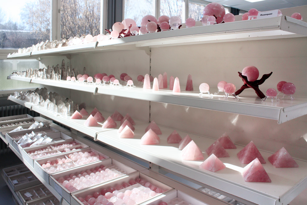 Pyramiden, Obelisken und Kugeln aus Rosenquarz